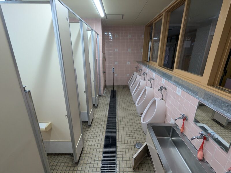 床はタイル貼りの“湿式床”で水を流して清掃をする仕様となっていました。