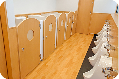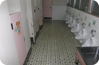 様々な問題を抱えた園のトイレが、職人たちの見事な施工によって劇的にリニューアル。